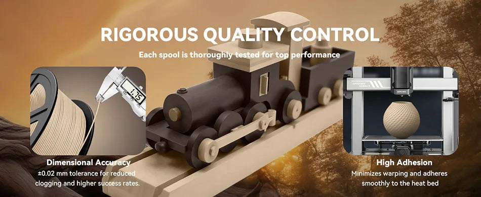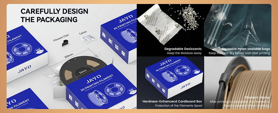 Engineered with a ±0.02 mm tolerance, JAYO pla wood filament ensures smooth feeding and extrusion, preventing clogs. Each roll is dried for 24 hours and vacuum-sealed for superior performance.